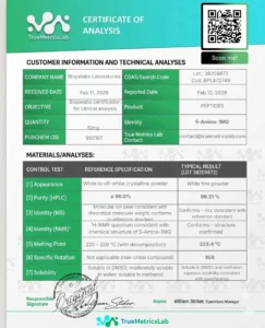 Biopelabs states: this material is provided exclusively as a chemical input for research purposes. Its use is restricted to in vitro assays and experimental laboratory activities. The information presented is strictly for informational and educational purposes. Handling must be performed only by qualified professionals. This product is not classified as a drug, food, or cosmetic and must not be used, marketed, or represented as such.
